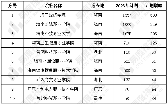 表 2 2023年海南高考扩招TOP10高校(专科普通类招生)