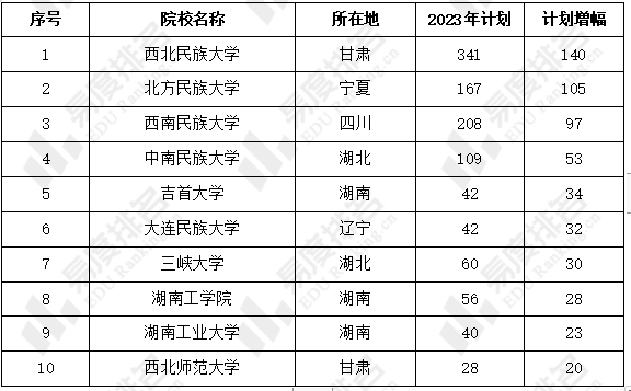 2023年青海高考扩招和减招TOP10高校