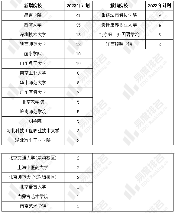 2023年新增20所高校(含校区)在青海招生,新增院校2023年招生总计划为174。2023年青海高考招生院校撤销4所,撤销院校2022年招生总计划为18。