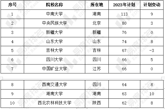 2023年共有44所高校减少了超200个招生计划,其中