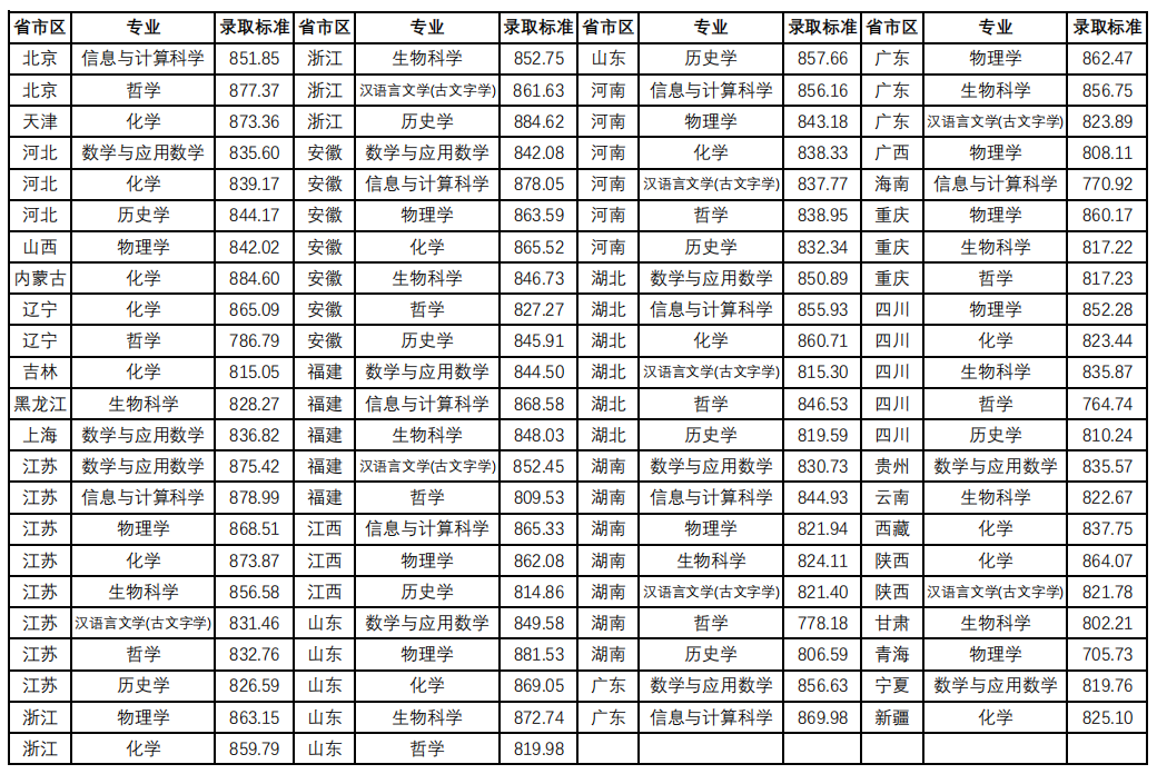 根据《南京大学2023年强基计划招生简章》规定,现将录取标准公示如下。考生可通过强基计划报名平台查询录取情况。公示期为2023年6月29日-7月3日。公示期间若对公示名单有疑问或异议请与我办联系,邮箱:bkzs@nju.edu.cn,联系人:赵老师。附件:南京大学2023年强基计划录取标准南京大学2023年强基计划录取标准