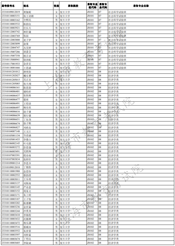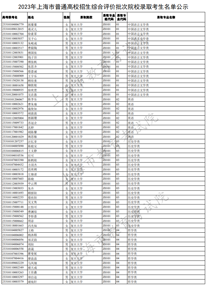 文章来源:上海招考热线 上海2023综合评价批次院校录取考生名单公示
