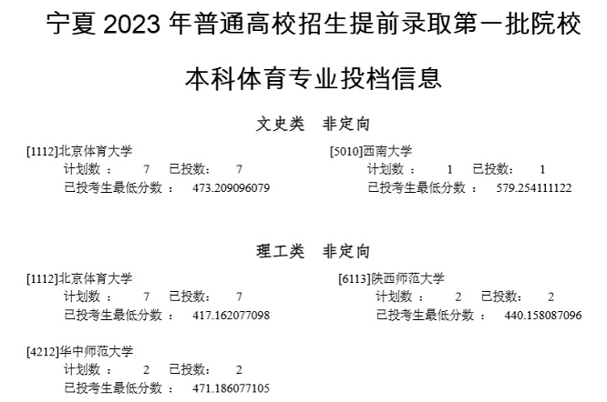 文章来源:宁夏教育考试院 宁夏2023年普通高校招生提前录取第一批院校本科体育专业投档信息