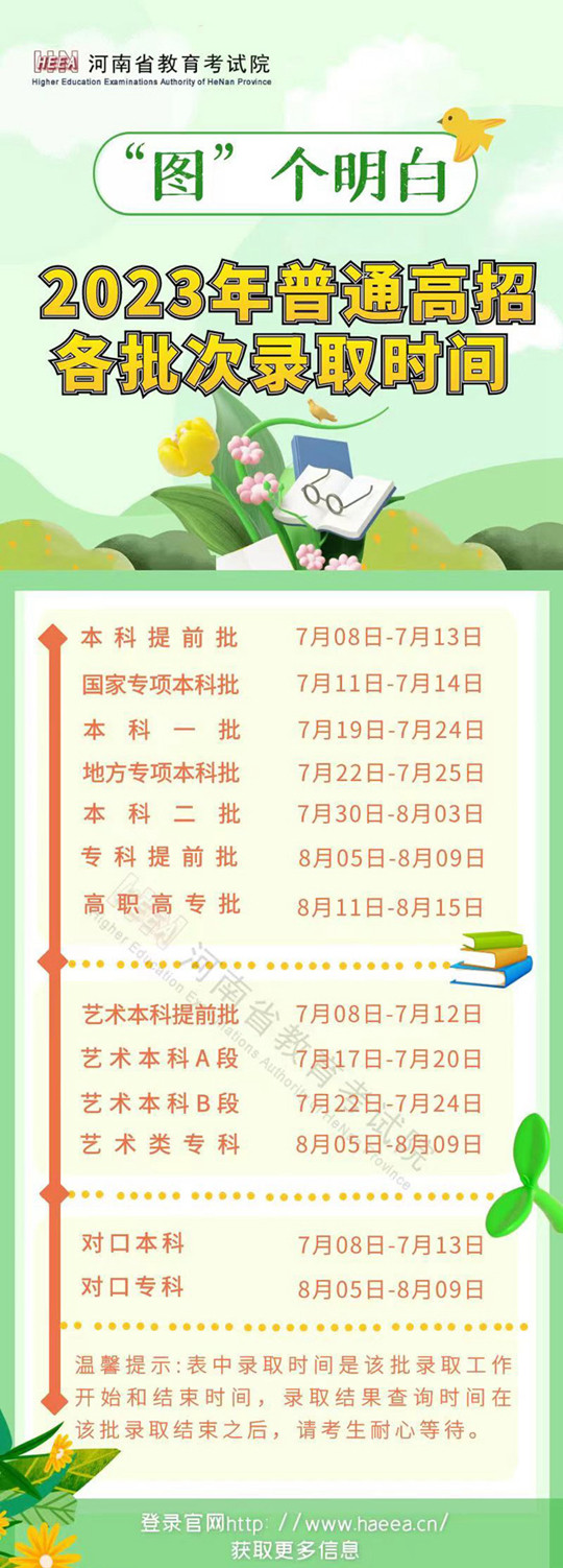 河南省2023年普通高招各批次录取时间
