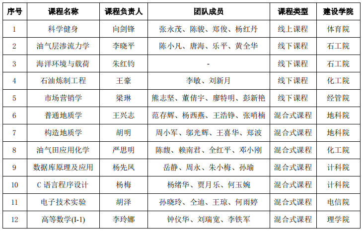 新获批的12门国家级一流本科课程,包括通识、学科基础、专业基础、专业核心等理论课程及实验课程。