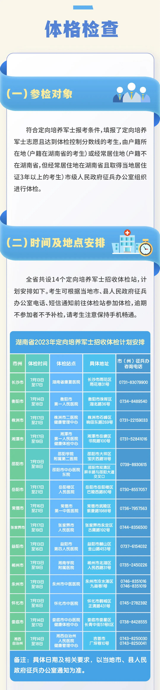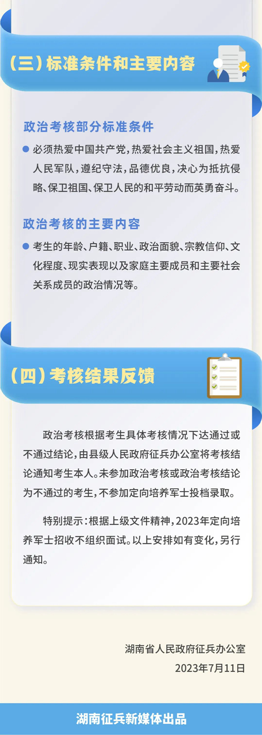 湖南省2023年定向培养军士招收体格检查和政治考核公告