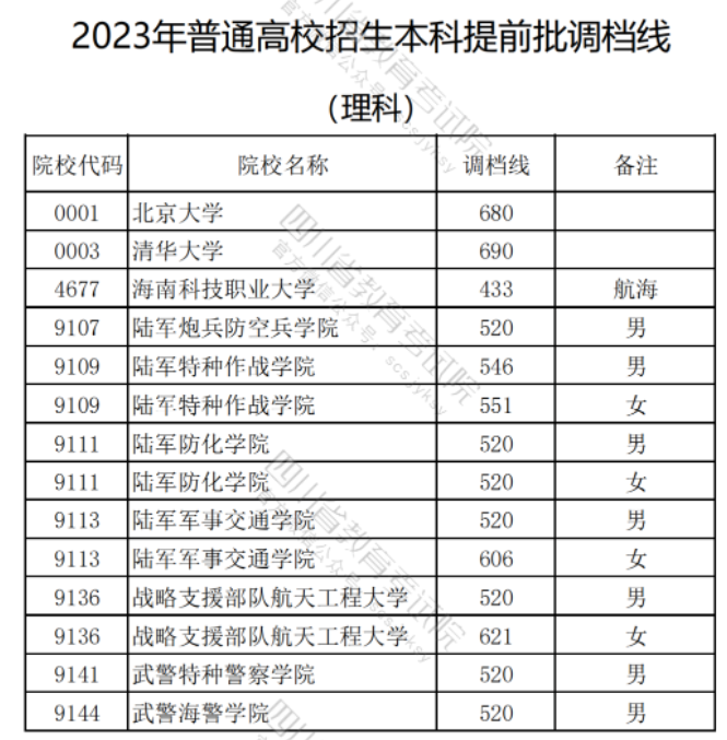 四川省2023年普通高校本科提前批次正在录取中,现将本科提前批次录取调档线(二)公布如下。