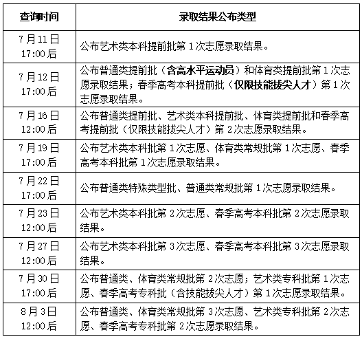 二、录取结果查询时间及类型
