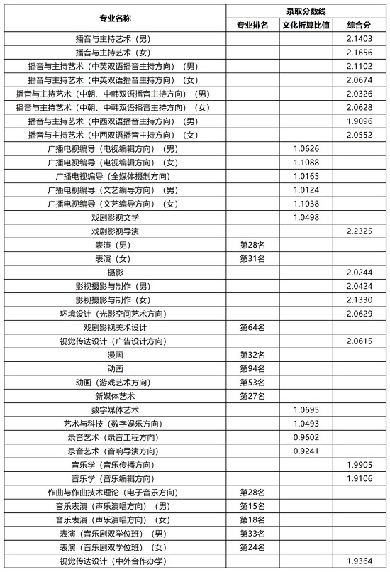 中国传媒大学2023年艺术类本科专业录取分数线如下: