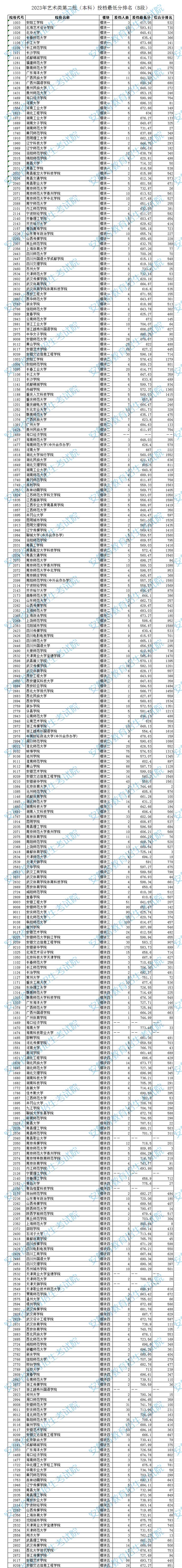 安徽2023年艺术类第二批(本科)投档最低分排名(B段)