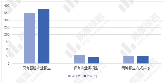 2023年材料类专业招生院校较去年略有增加。仅以普通专业招生的院校较去年增加27所,仅以专业类招生的院校减少17所,两种方式都招生的院校减少1所。更多的院校选择以普通专业招生,考生在志愿填报时更容易直接选择到自己所喜欢的专业。