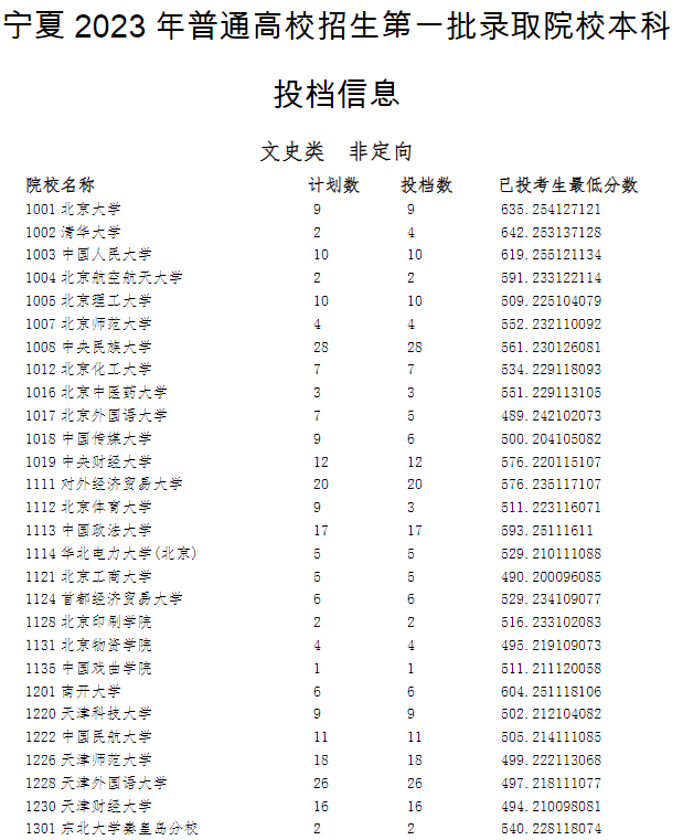更多详情:宁夏2023年普通高校招生第一批院校本科投档信息点击查看