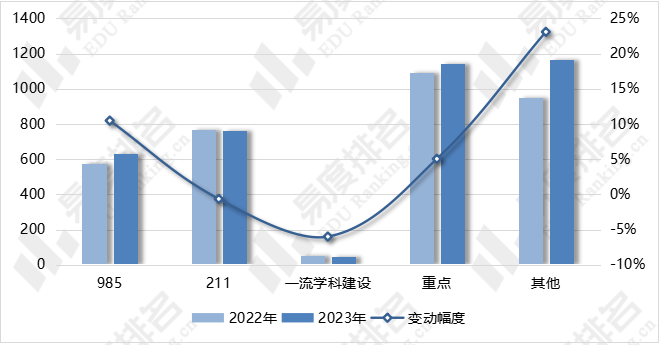 2023年,211院校和一流学科院校的招生计划均有不同程度的下降。985院校扩招幅度超过10%,华中科技大学、中国海洋大学、哈尔滨工业大学(威海)的计划增幅均超过20人。