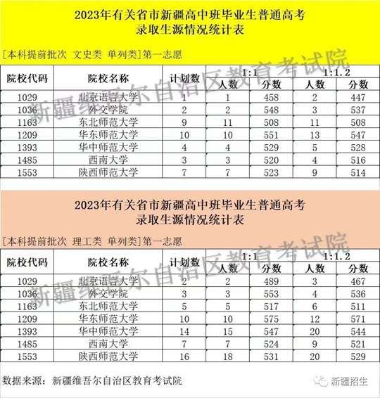 按照录取工作安排,2023年有关省市新疆高中班毕业生普通高考招生本科提前批次投档录取工作已开始,录取现场工作组根据投档原则进行了投档,并通知相关院校及时接档、阅档,要求其按照录取原则及招生章程进行录取。目前,各录取环节工作有序进行,现将各院校投档情况公布如下。