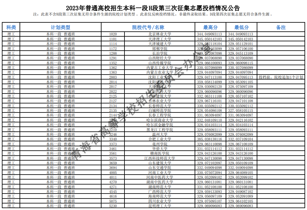 更多详情点击查看:2023年普通高校招生本科一段H段第三次征集志愿投档情况公告 点击查看