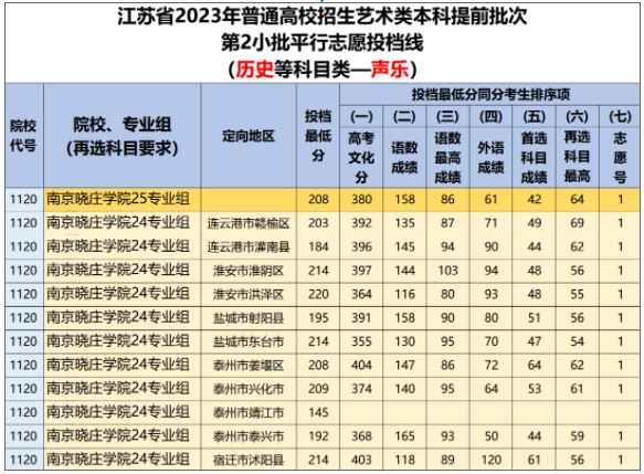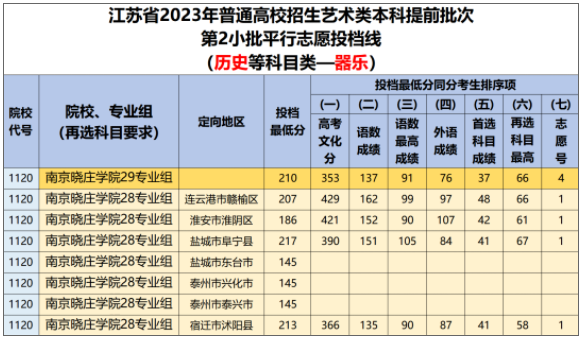 注:1.在投档过程中,艺术类考生投档分相同时,依次按高考文化分、语文数学两科之和、语文或数学单科最高成绩、外语单科成绩、首选科目单科成绩、再选科目单科最高成绩由高到低排序投档;如仍相同,比较考生志愿顺序,顺序在前者优先投档,志愿顺序相同则全部投档。2.投档分为专业分。