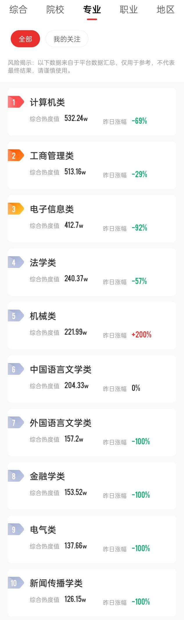 专业报考热度榜