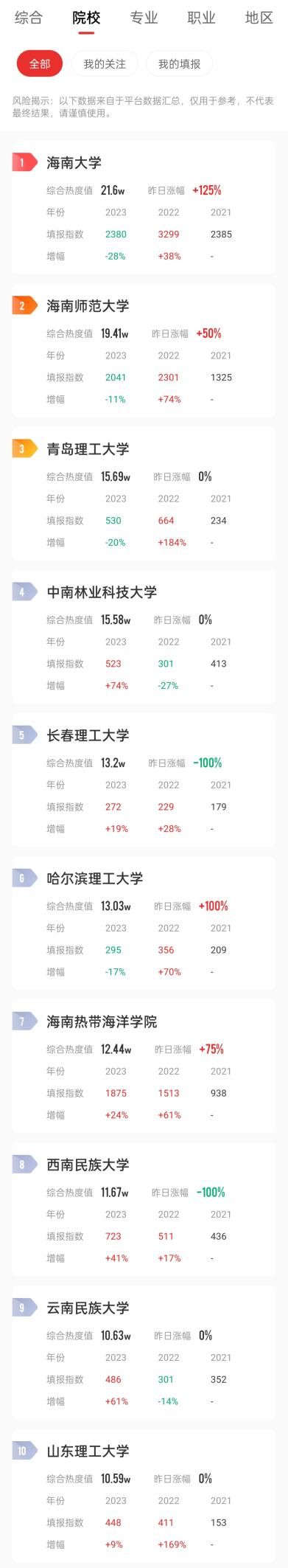 院校报考热度榜