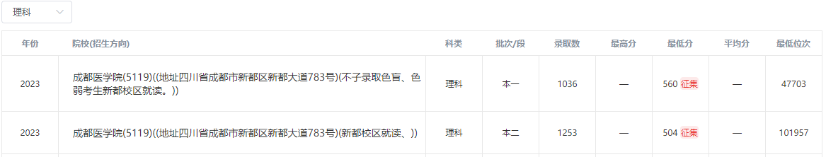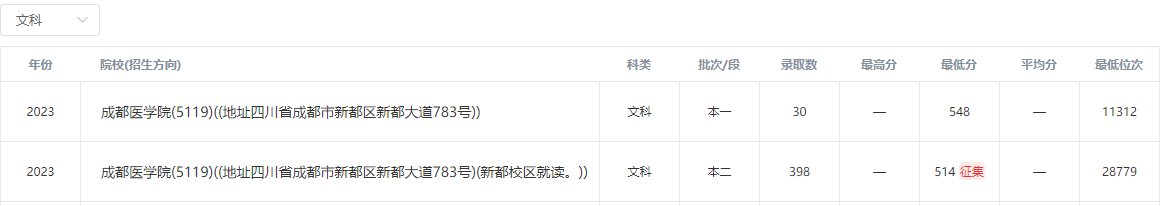 2023年成都医学院在四川录取分数线