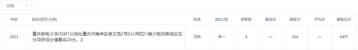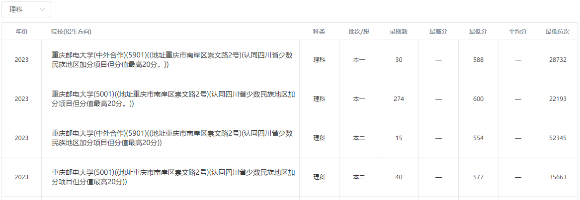 2023年重庆邮电大学在四川录取分数线