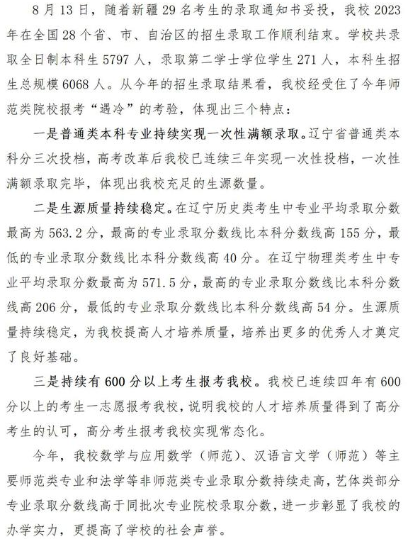 沈阳师范大学2023年本科专业招生录取工作顺利结束