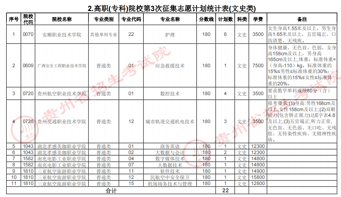 二、院校征集志愿计划及分数线见附表。考生填报时,请仔细查阅《贵州省2023年高考高校招生专业目录》和院校招生章程,了解院校招生专业的详细要求。