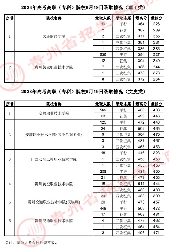 贵州2023年高考高职(专科)院校8月19日录取情况