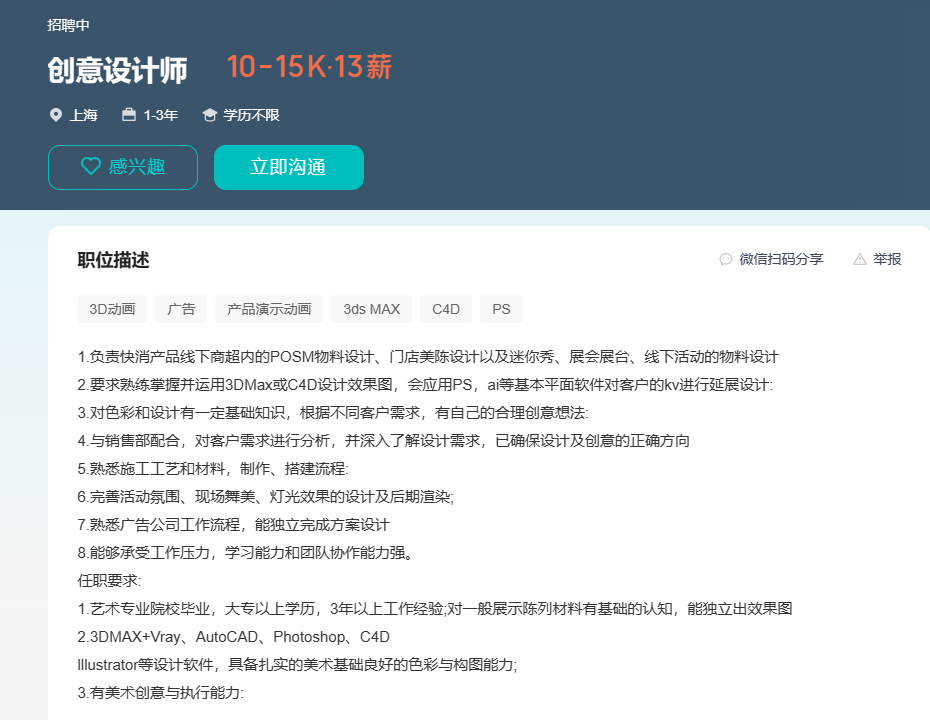 大部分舞美毕业生都是进入营销策划类的私企,很多人可能会认为这类私企工资少、对应岗位还少,其实这只是大家对舞美专业的片面认知,现在文化产业发展得越来越好,私企里面舞美相关的岗位也越来越多,如创意设计师、软装设计师、舞美会展3D设计师、灯光师、空间设计师等等。而且舞美相关的职业薪资水平都不低,据职友集数据显示,上海市本科以上的舞美设计师,在没有工作经验的前提下月薪约10k,在所有美术专业中处于较高薪资水平。