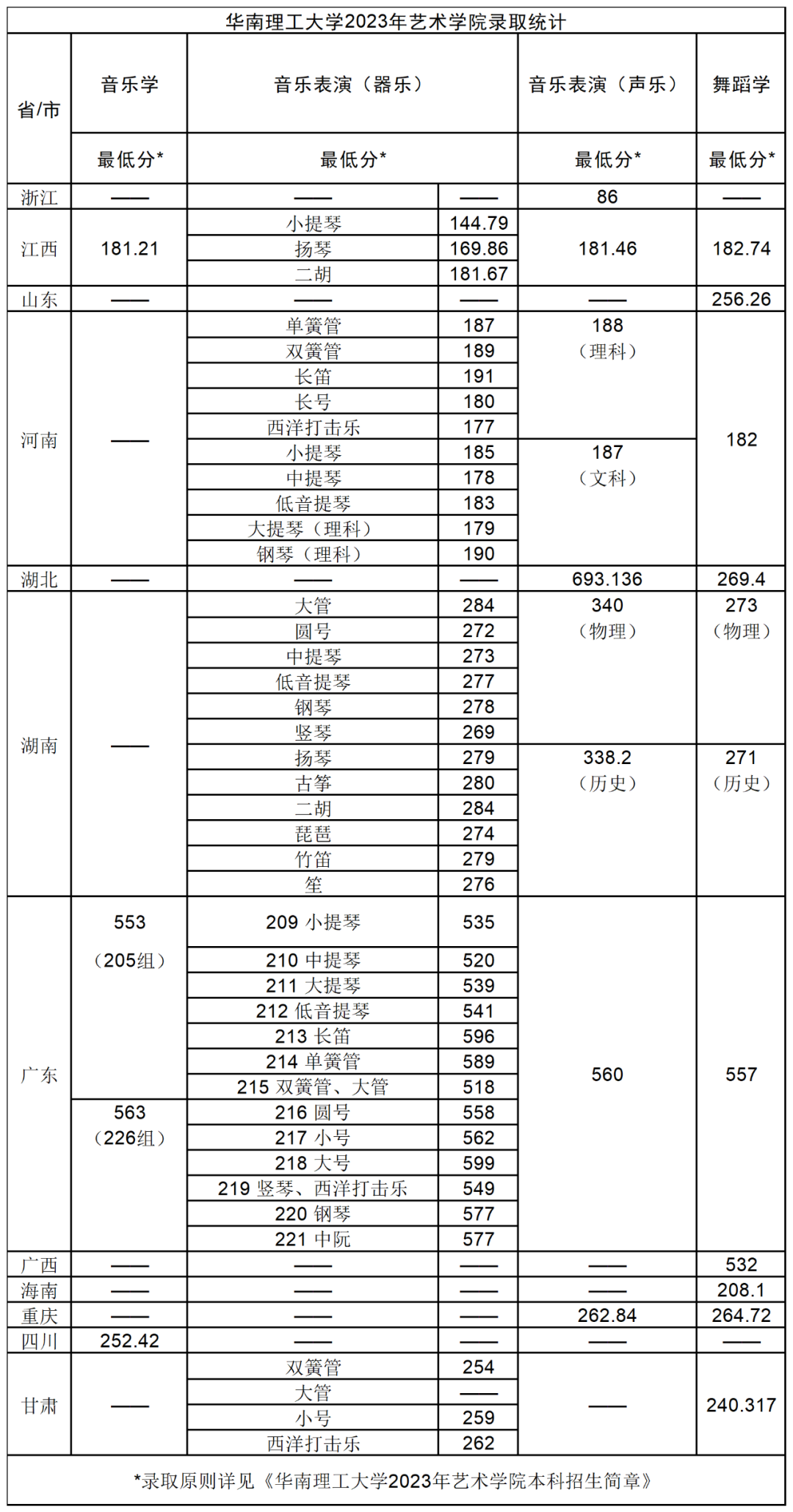 华南理工大学2023年艺术学院本科招生录取分数统计