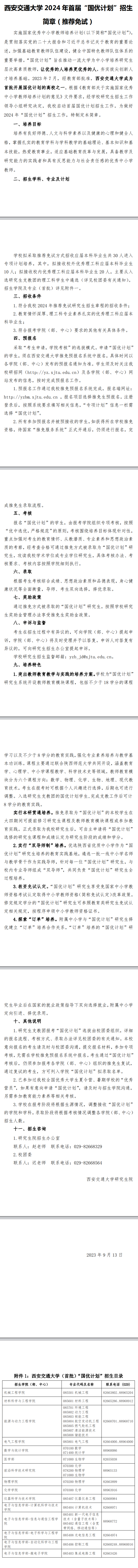 西安交通大学2024年首届“国优计划”招生简章(推荐免试)