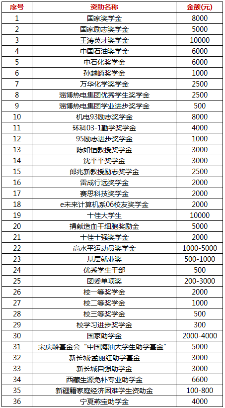 包括国家奖学金、国家励志奖学金、企业奖学金、