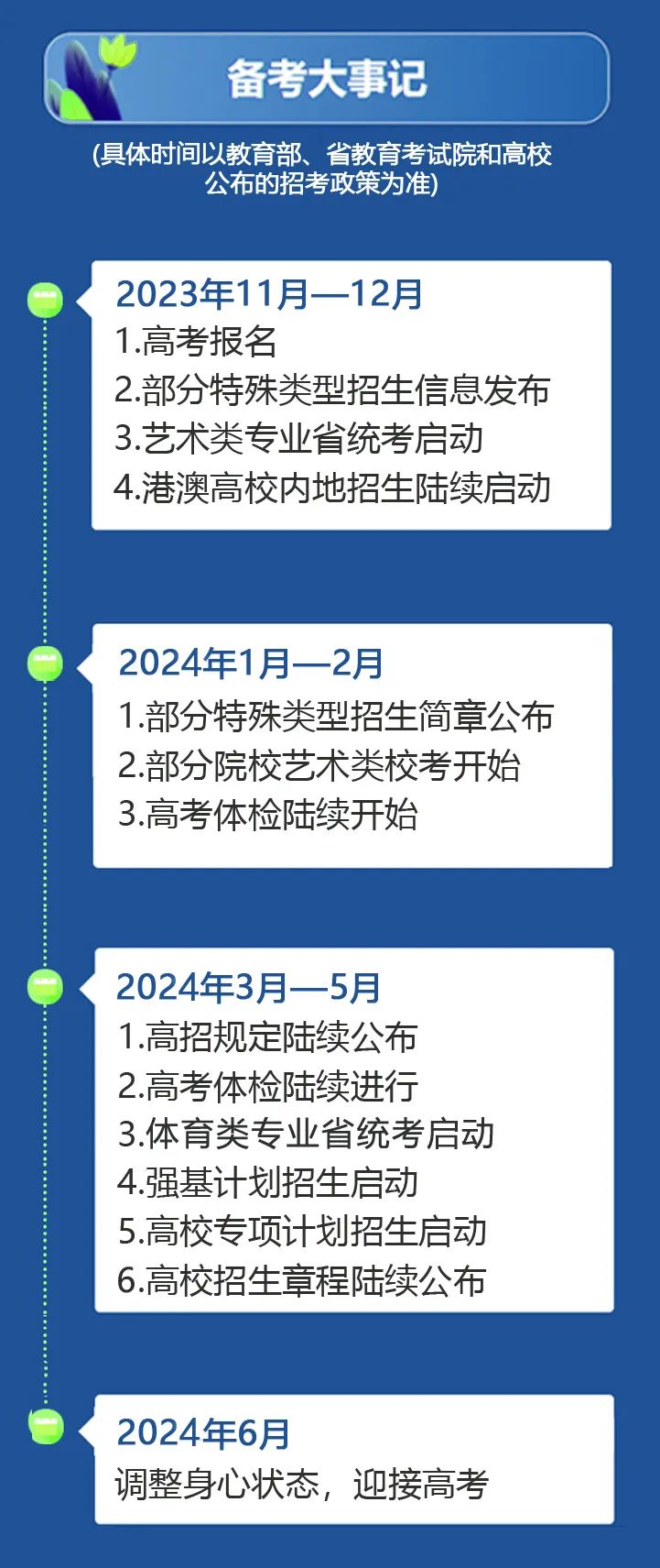 随着新学期开学,新一届高三学生踏上了2024年高考的征途。面对即将到来的高考,各位考生你们准备好了吗?先来看看备战高考大事件时间表吧!