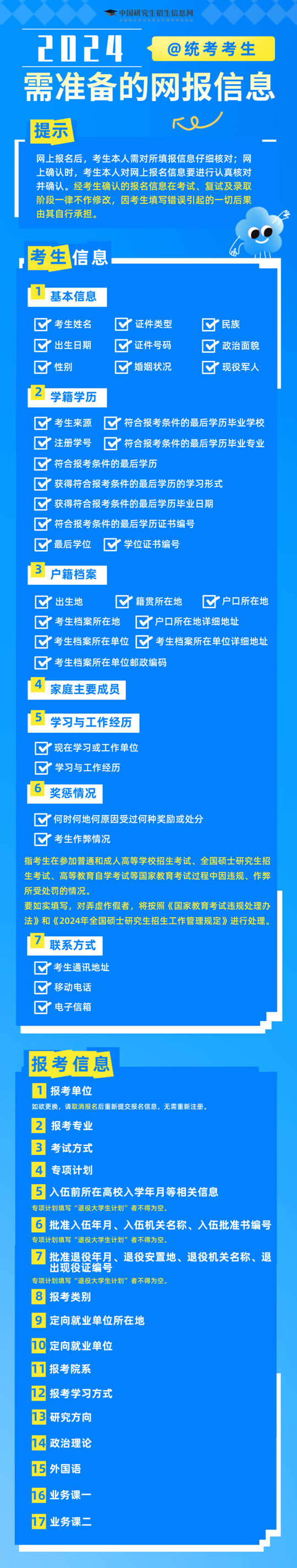 2024统考考生需要准备哪些网报信息?