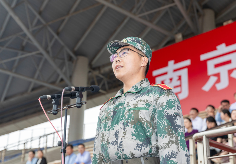 2023级新生代表,地理与生物信息学院本科生周溢同学表达出2023级南邮学子的共同心声,表示将努力融汇基因红、邮电绿、信息蓝三原色,用脚步丈量世界,用心灵感知远方,跨越五洲四海,做新时代的“脊梁”。