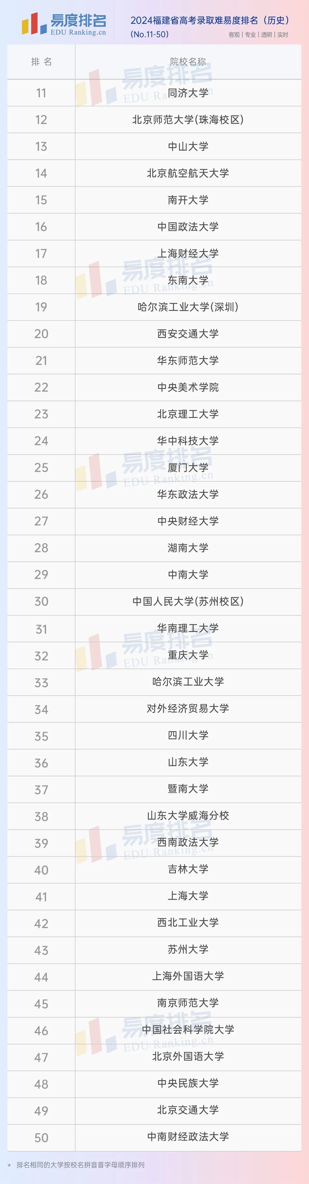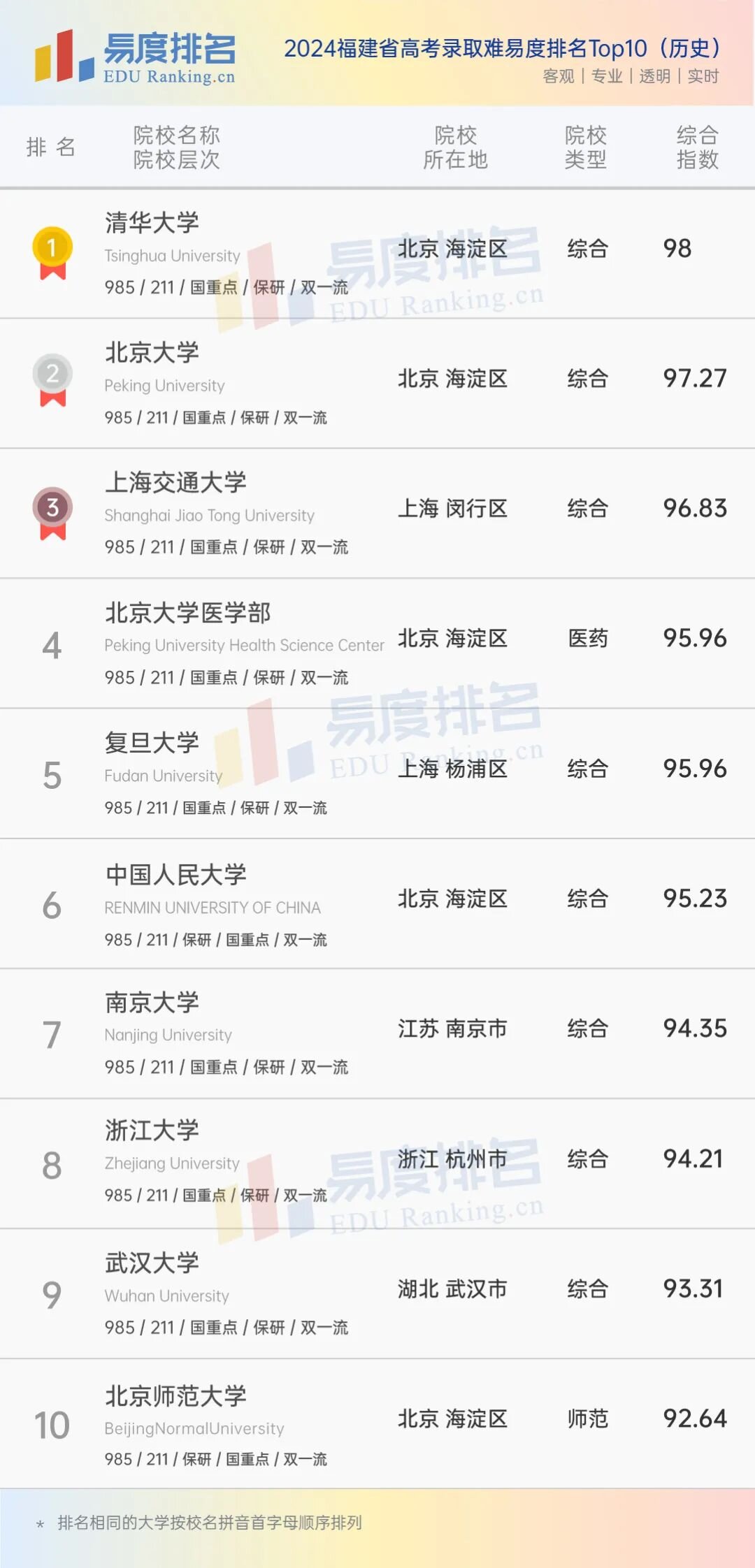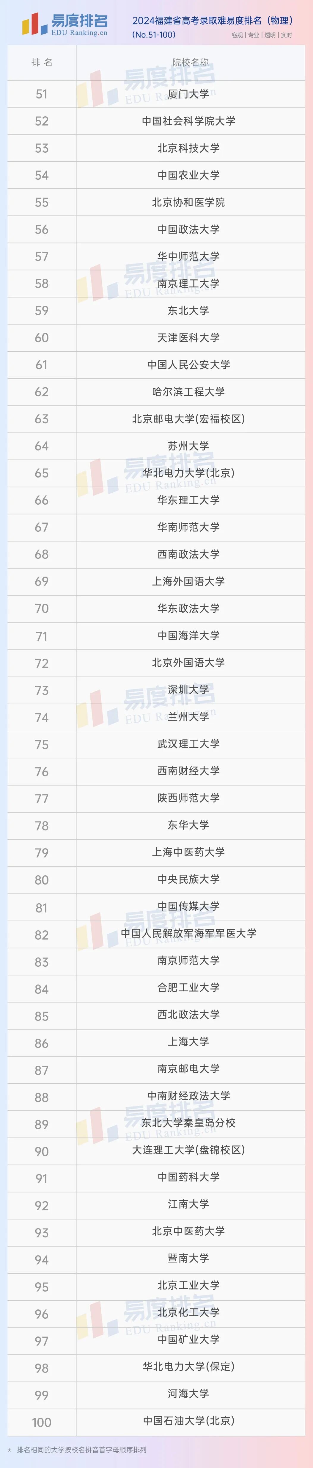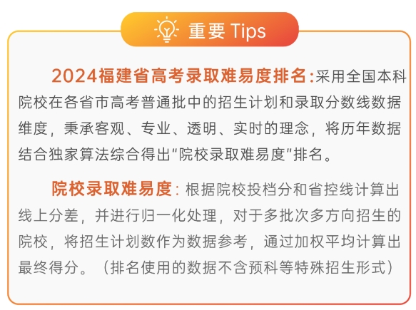 本期将公布“2024福建省高考录取难易度排名”前100位。