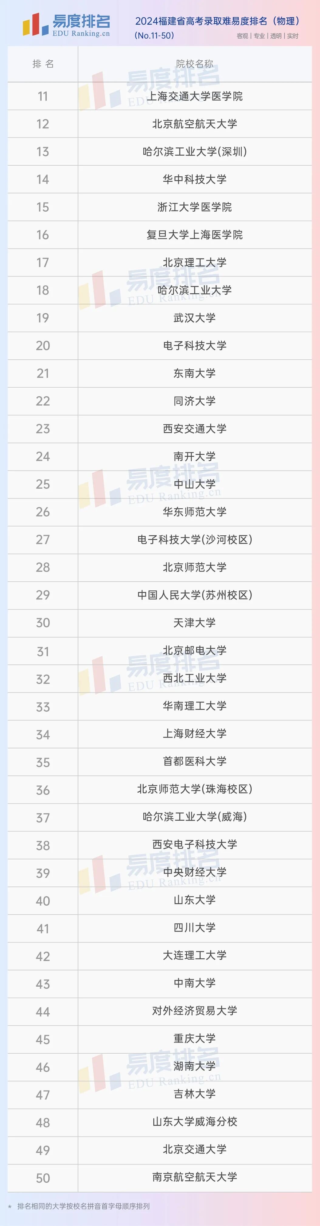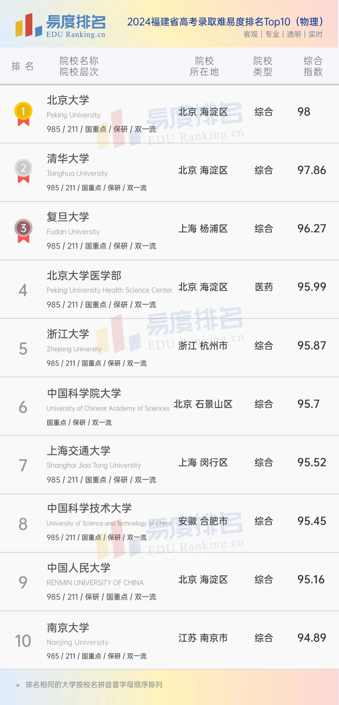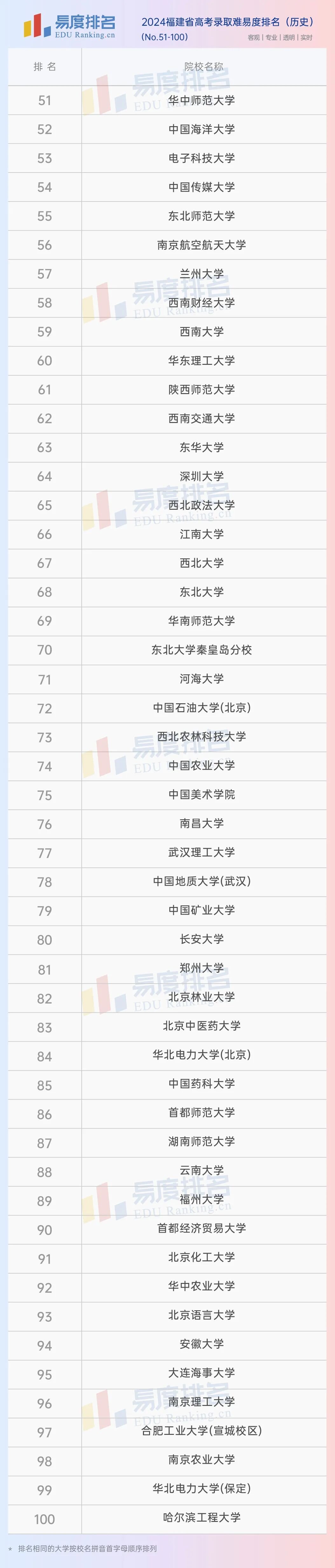 本期将公布“2024福建省高考录取难易度排名”前100位。