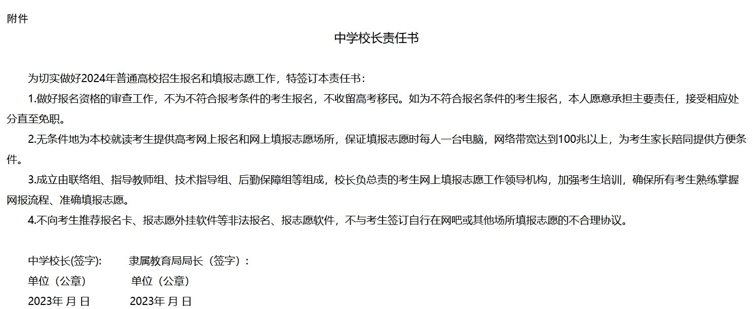 3.不完全符合参加本科录取条件的考生,可以报考高职高专批。在网上预报名时,“承诺只报考高职高专批”项须选择“是”,并在现场确认时,签订《2024年内蒙古自治区普通高校招生只报考高职高专批承诺书》。