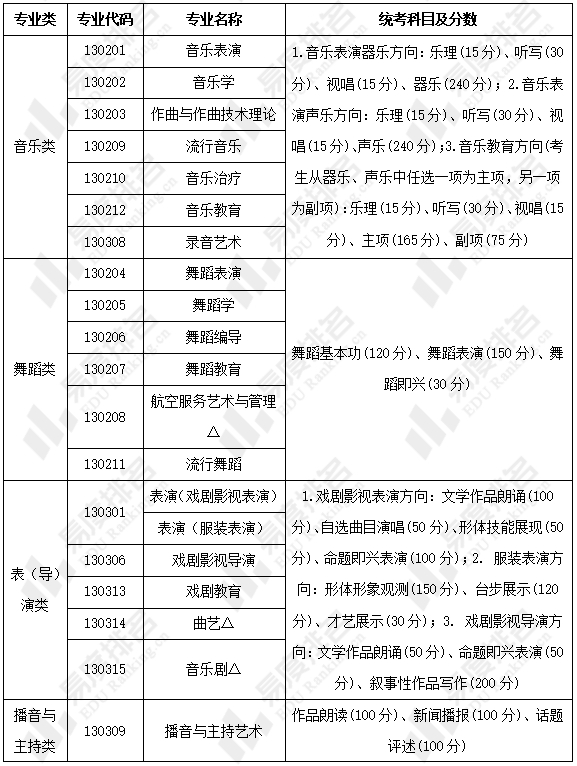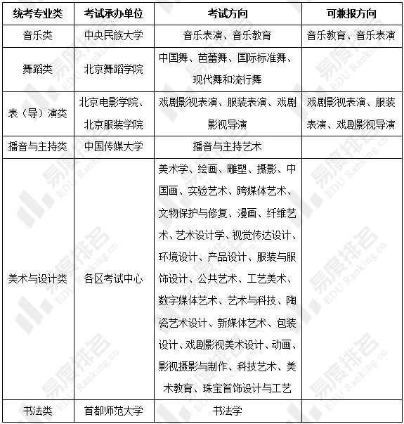 2. 6个艺术类专业统考,1个艺术类专业省际联考