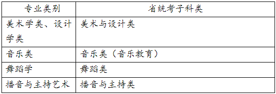 根据教育部《关于进一步加强和改进普通高等学校艺术类专业考试招生工作的指导意见》(教学〔2021〕3号)精神,综合考虑我校艺术类专业办学定位和相关省份艺术类统考子科类设置情况,现将我校2024年艺术类专业招生对应省级统考子科类要求公布如下:
