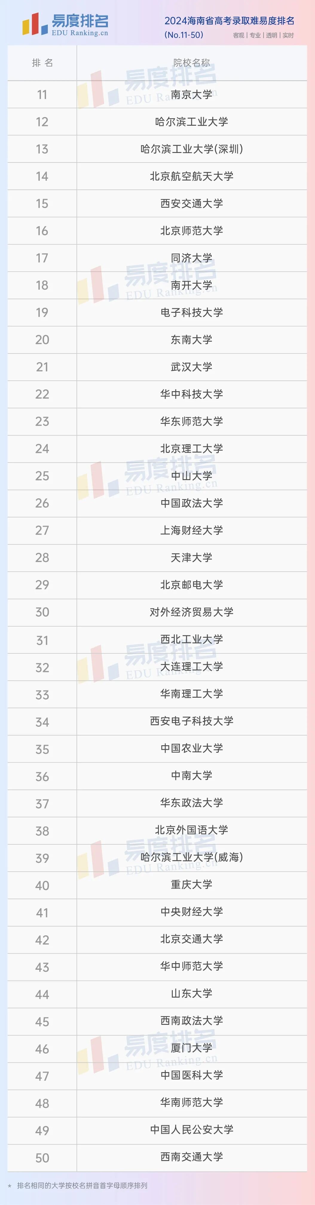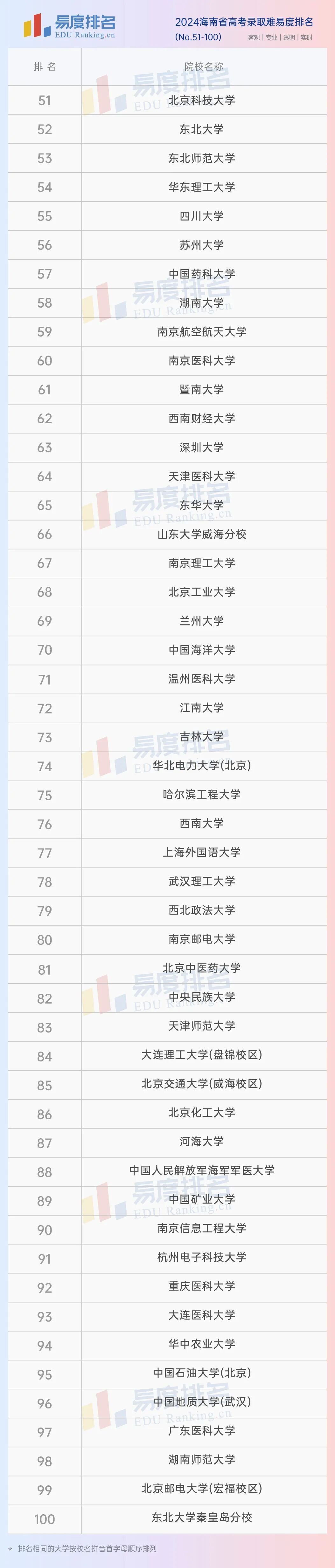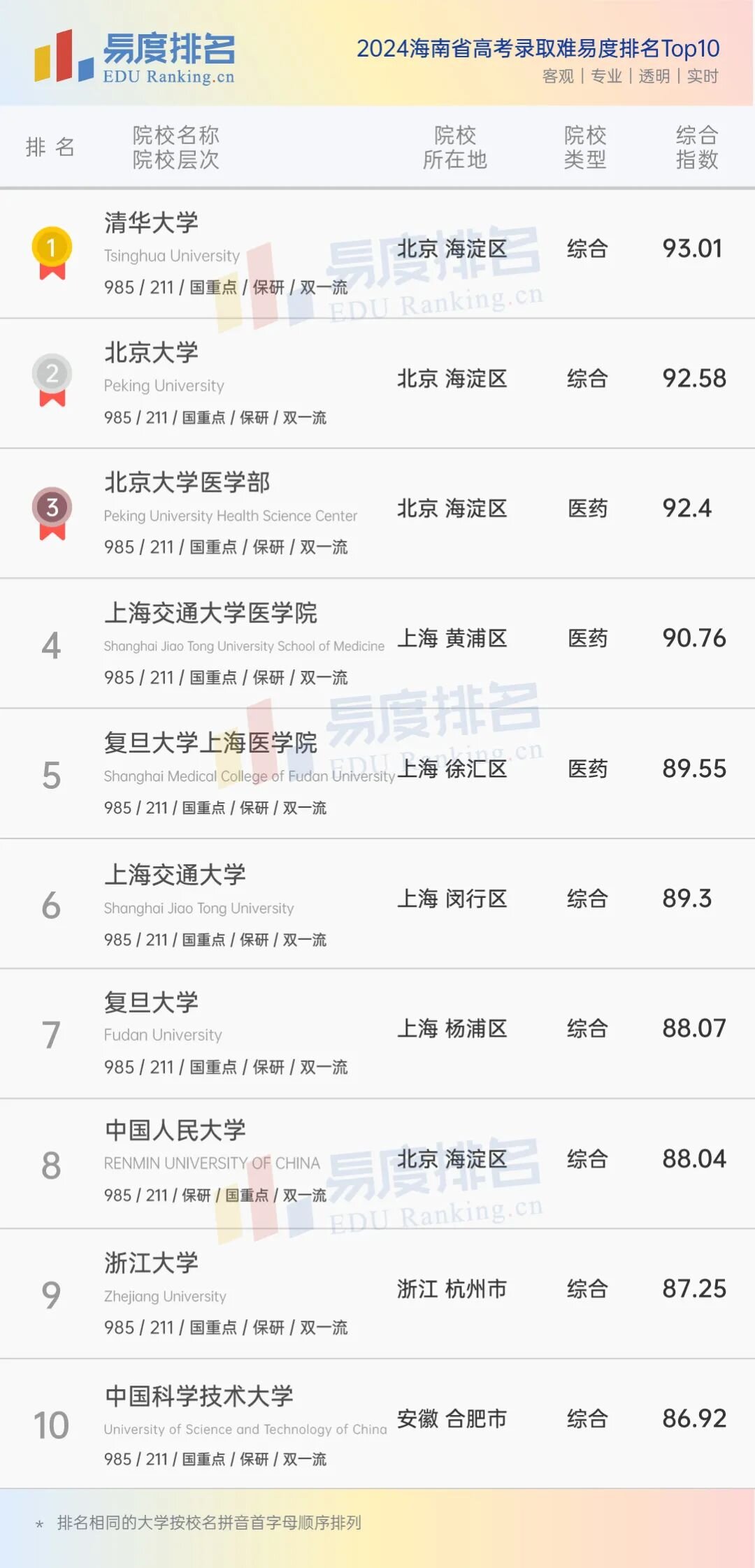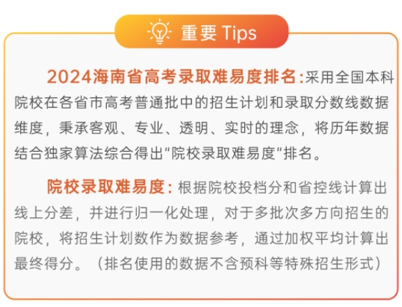 本期将公布“2024海南省高考录取难易度排名”前100位。