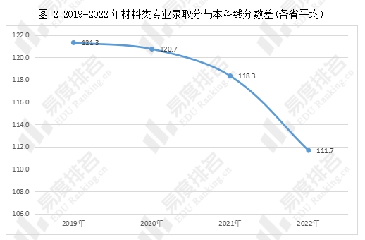 注:1.由于材料类专业主要以理科/物理招生为主,该数据不统计文科/历史的线上分差;2.不含中外合作、试验班、预科班、民族班等