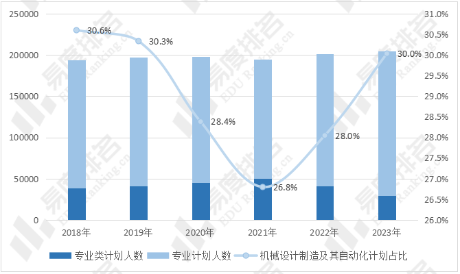 1. 机械类专业计划人数整体小幅增长