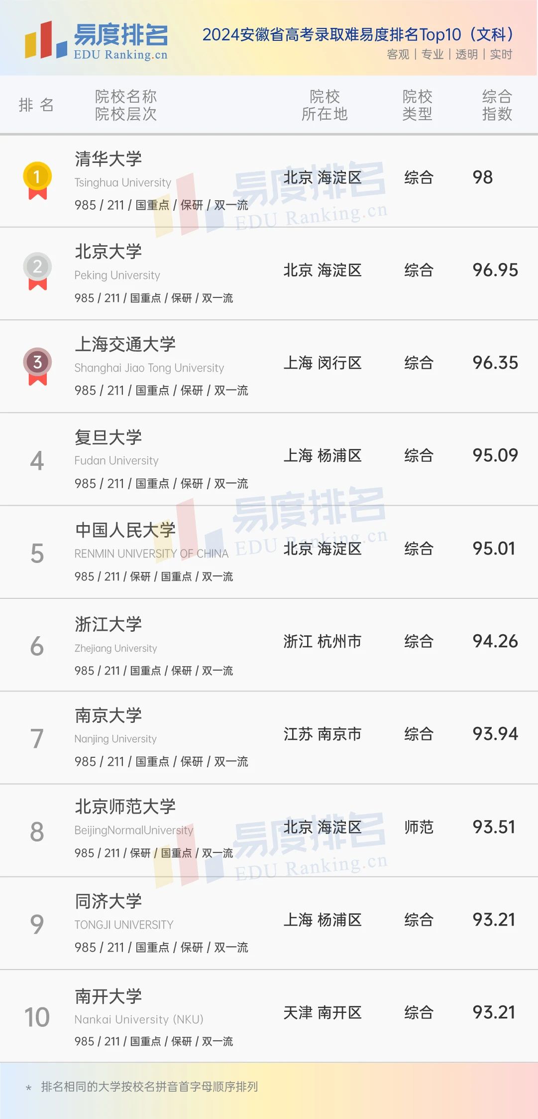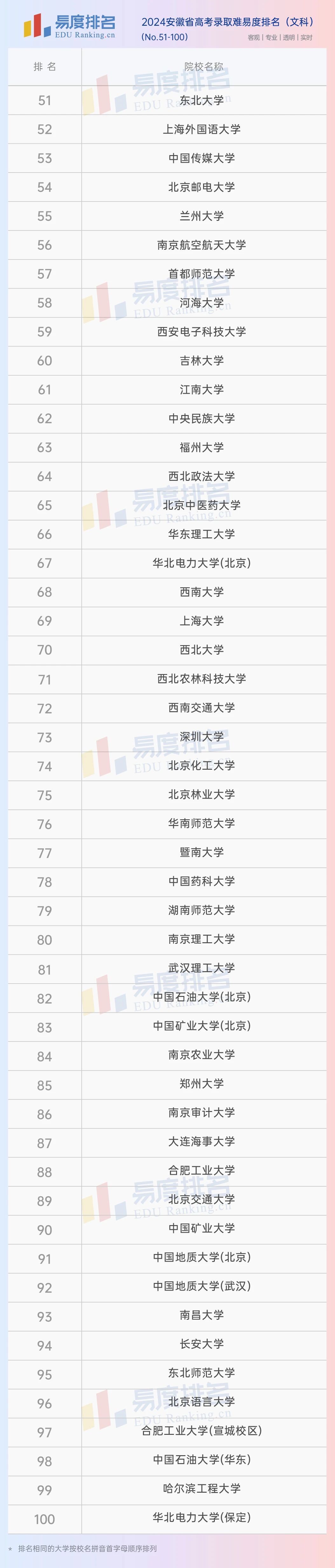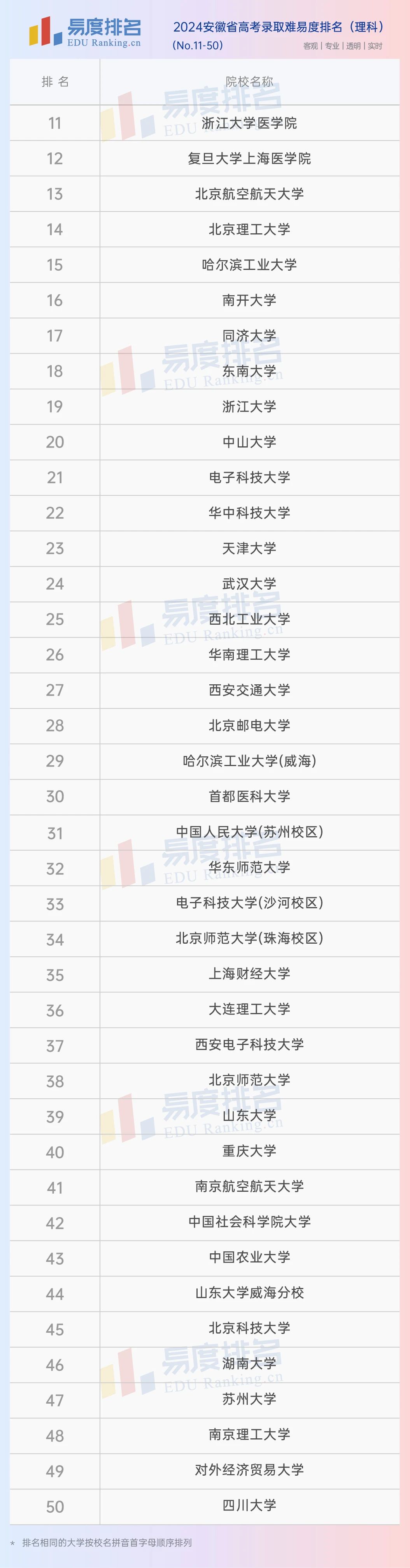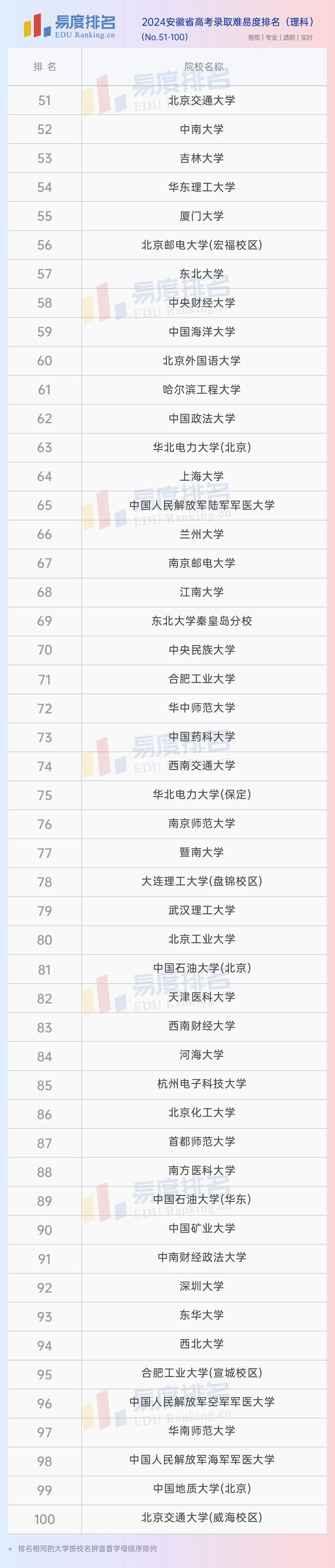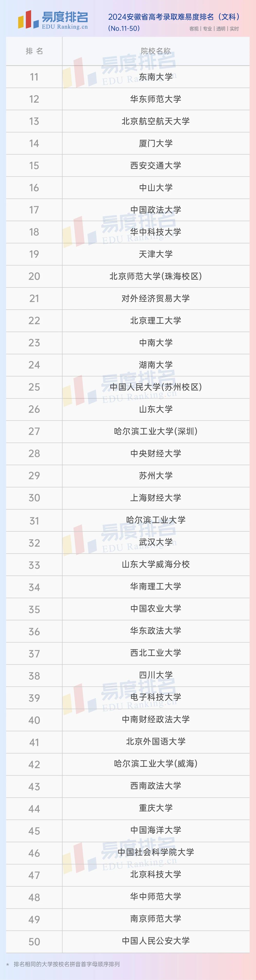 本期将公布“2024安徽省高考录取难易度排名”前100位。(具体排名方式见文末)