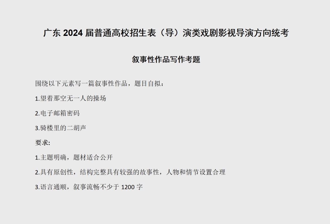 广东2024年表导演统考考题(导演)