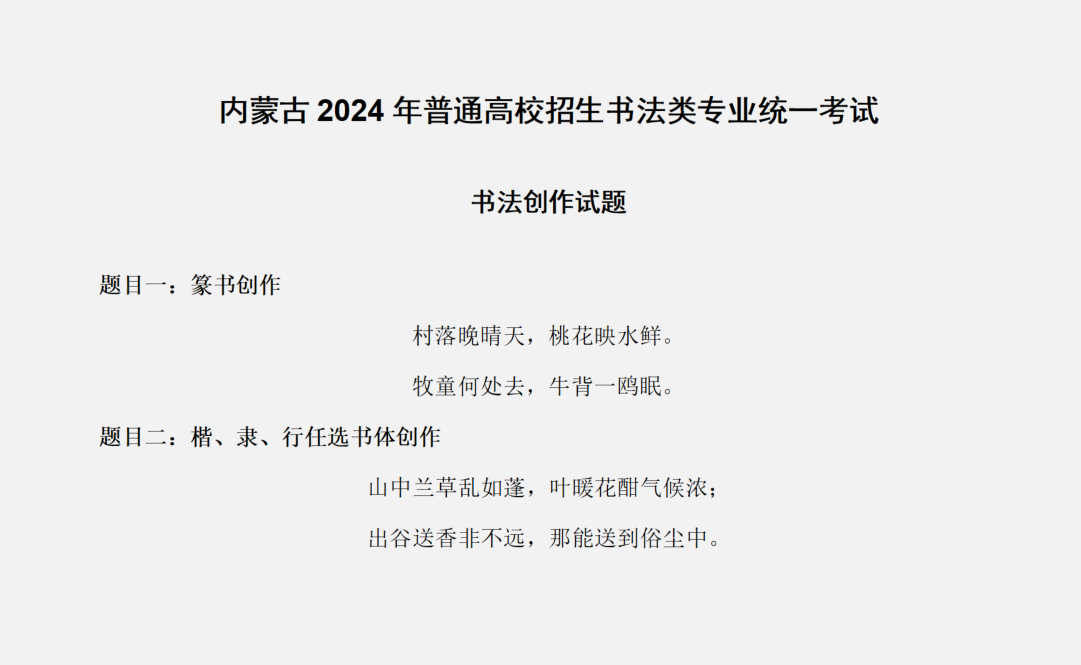 内蒙古2024年书法类专业统考考题