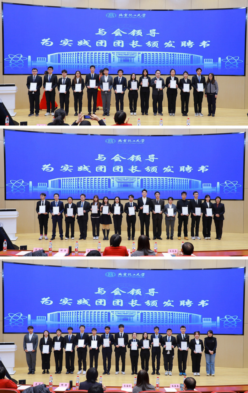 李庆介绍2024年“我的北化我代言”寒假招生宣传社会实践活动的基本情况,并宣读《关于聘任2024年“我的北化我代言”寒假招生宣传社会实践活动实践团团长的决定》,与会领导为实践团团长颁发聘书。