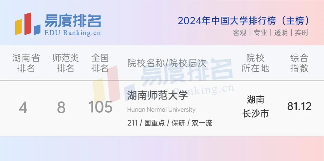 湖南师大在师范类院校中口碑很好,前身是1938年创立的中国第一所独立设置的国立师范学院,在全国排名基本保持在百名上下,省内排名位列三所985之后。