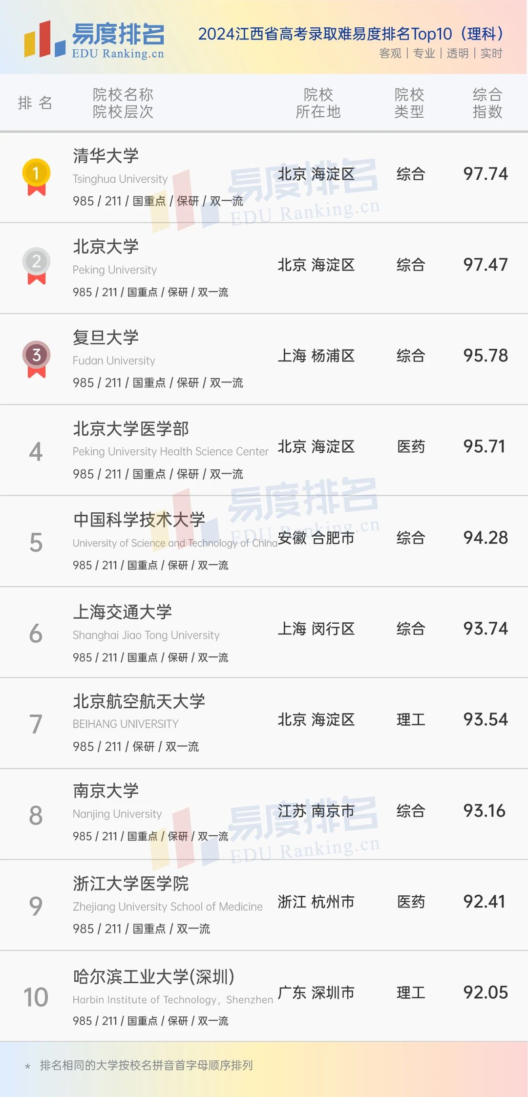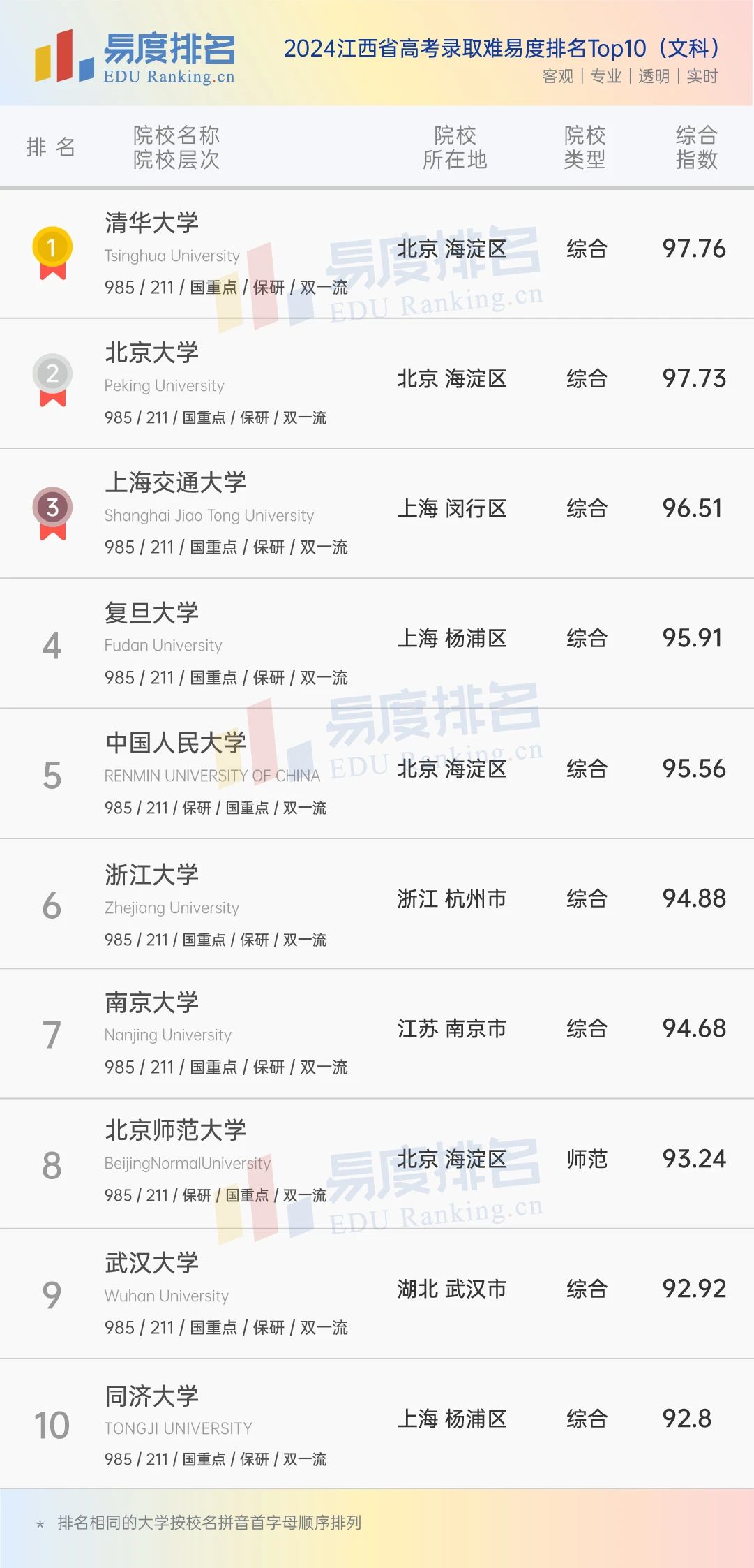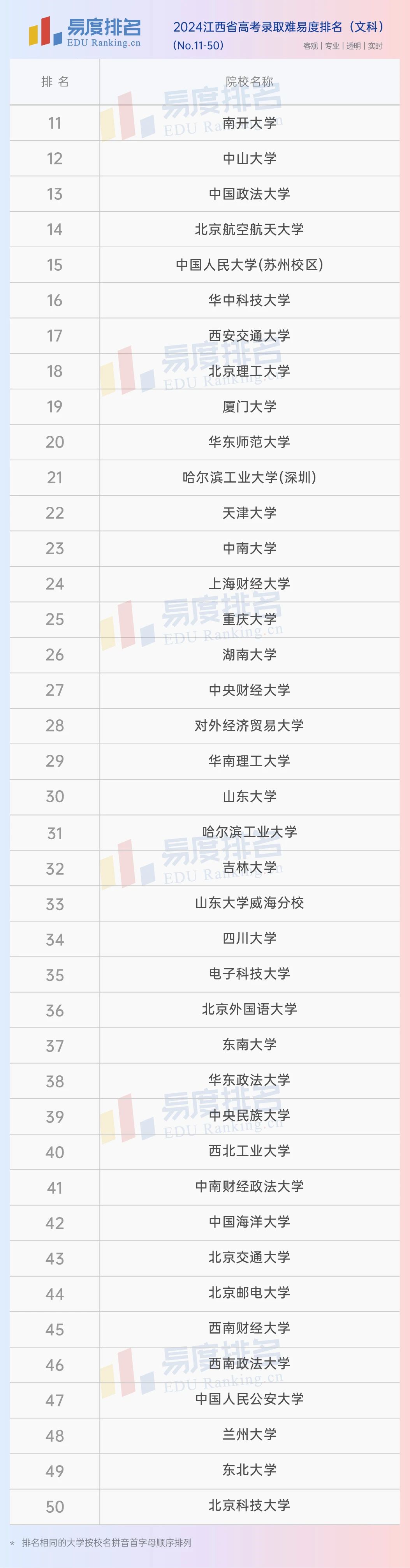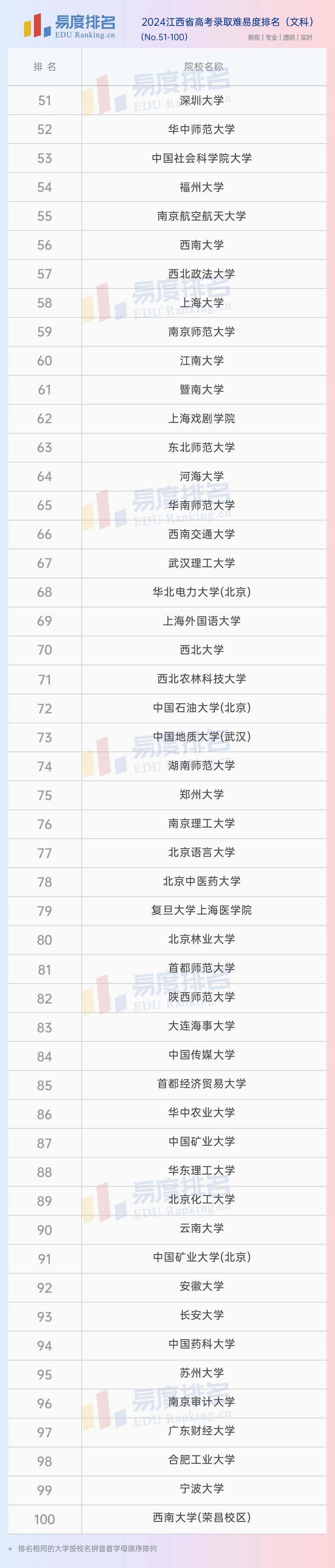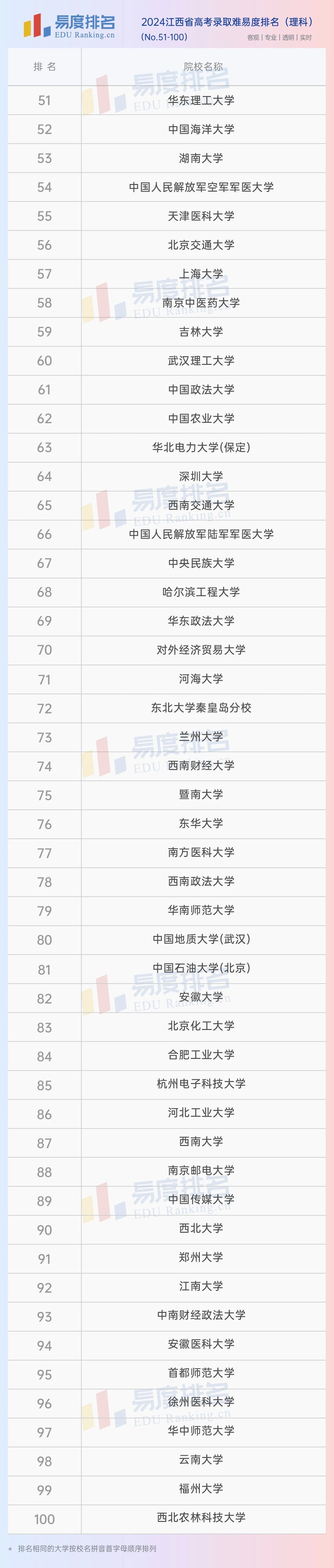 本期将公布“2024江西省高考录取难易度排名”前100位。(具体排名方式见文末)
