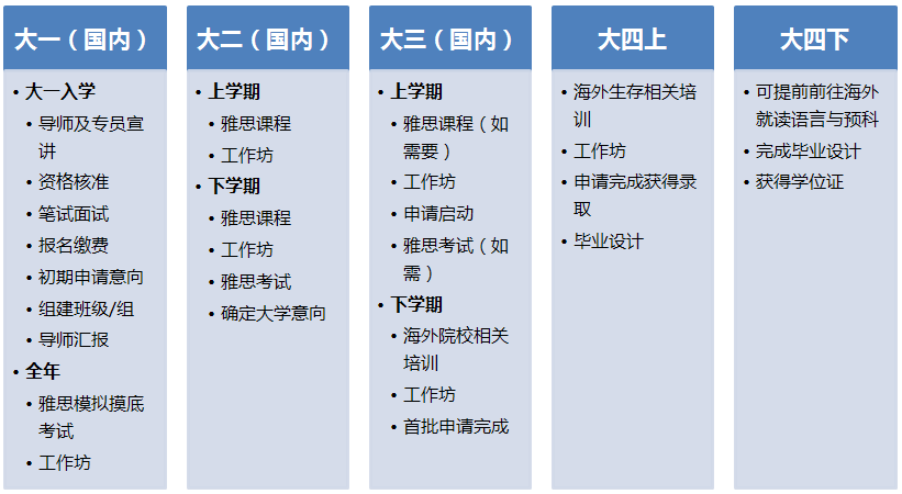 海外院校资源丰富;提高名校申请竞争力;具有多年海外留学申请经验导师负责申请。