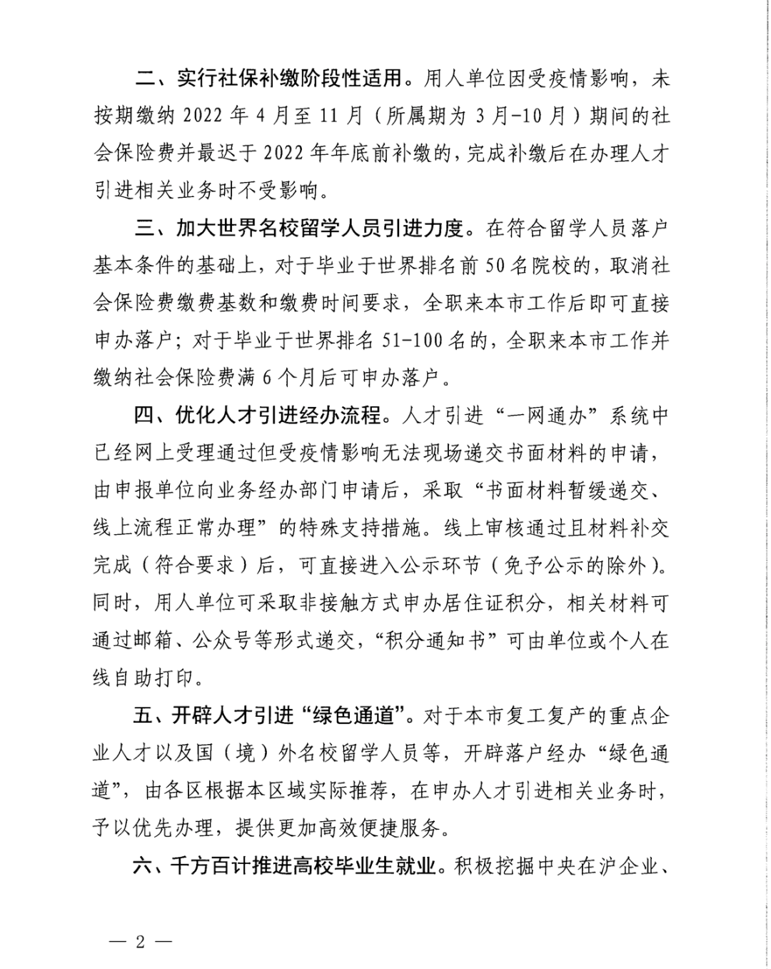留沪中心解读:国外院校世界排名前50名毕业的同学,对于社保基数、报税收入、社保个税缴纳时长无要求,全职来沪工作就可以直接落户!